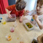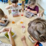 Podczas warsztatów chemicznych, dzieci miały okazję wcielić się w rolę małych naukowców. Dzieci aktywnie uczestniczyły w zajęciach, samodzielnie wykonując proste doświadczenia z bezpiecznych składników. Warsztaty wzbudziły ogromne zaciekawienie światem nauki, rozwijały spostrzegawczość, ciekawość poznawczą i umiejętność współpracy. Zajęcia dostarczyły wszystkim uczestnikom wiele radości i niezapomnianych wrażeń.